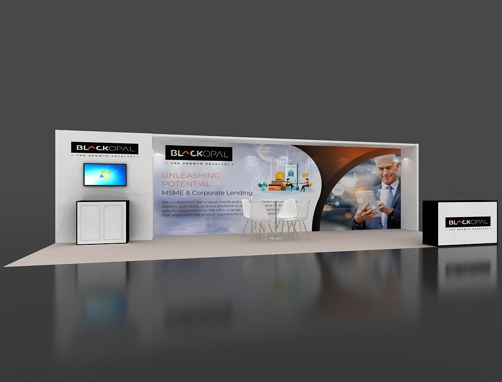 10x30 Booth: Extended Graphics, Monitor, and Meeting Space