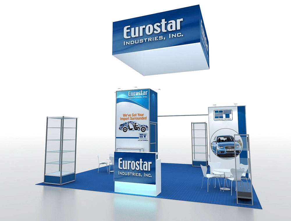 20x20 Open Exhibit with Large Graphic Backdrop and Media