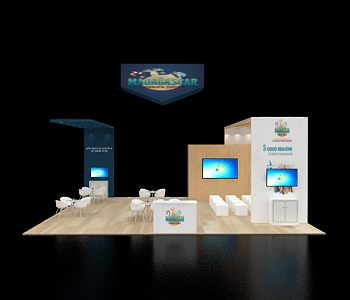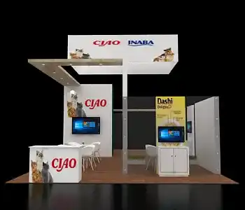 20x40 Exhibit with Central Tower and Three Presentation Screens