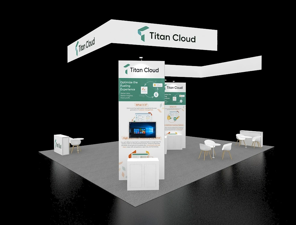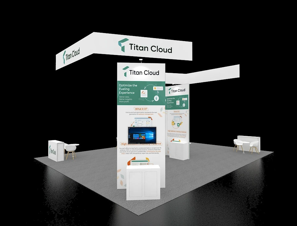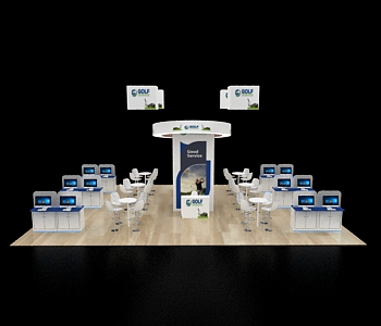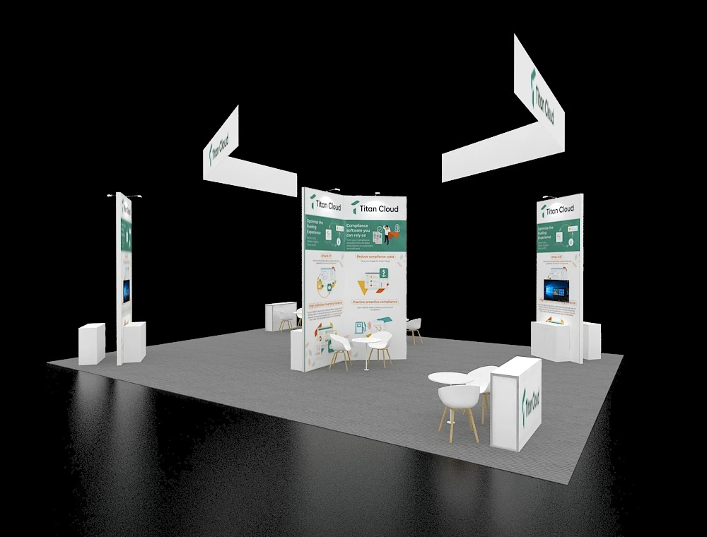 30x40 Exhibit with Floating Canopy and Triple Demo Towers