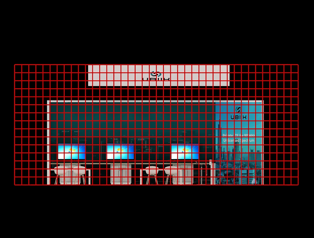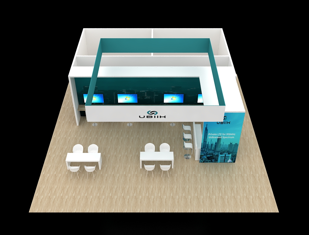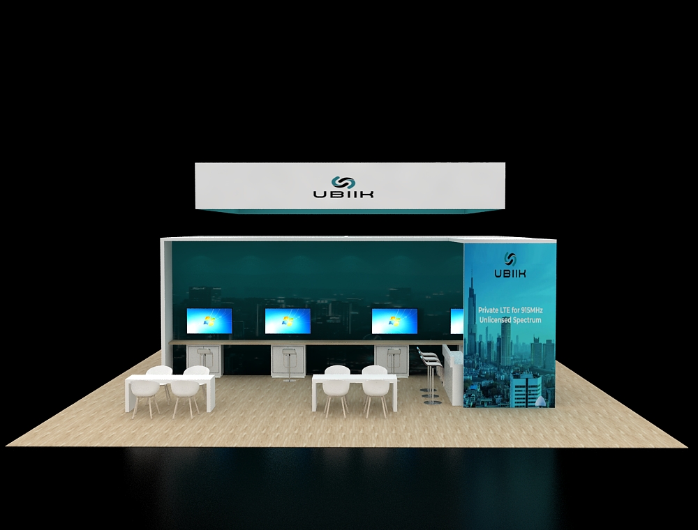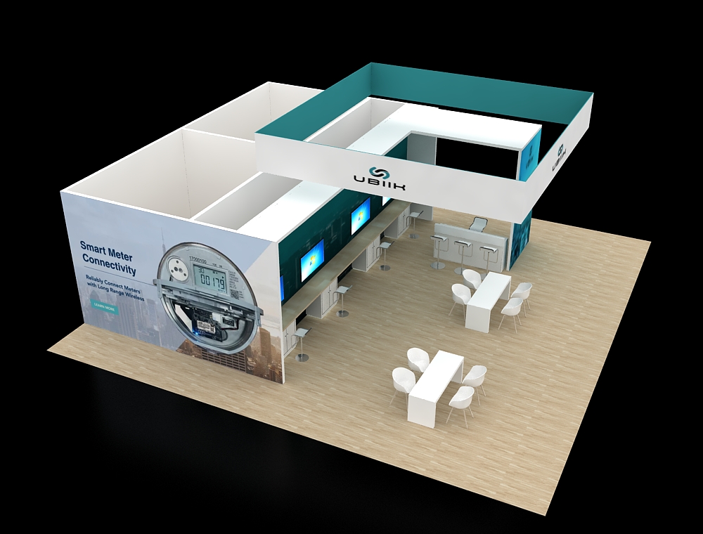 40x40 Island Exhibit with Wood Accents & Luminous Canopy