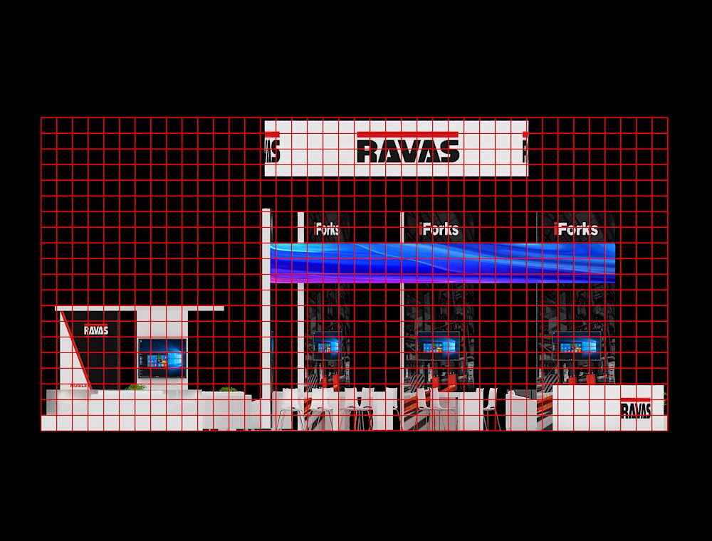 40x40 Island Exhibit with Circular Halo & Curved Counter