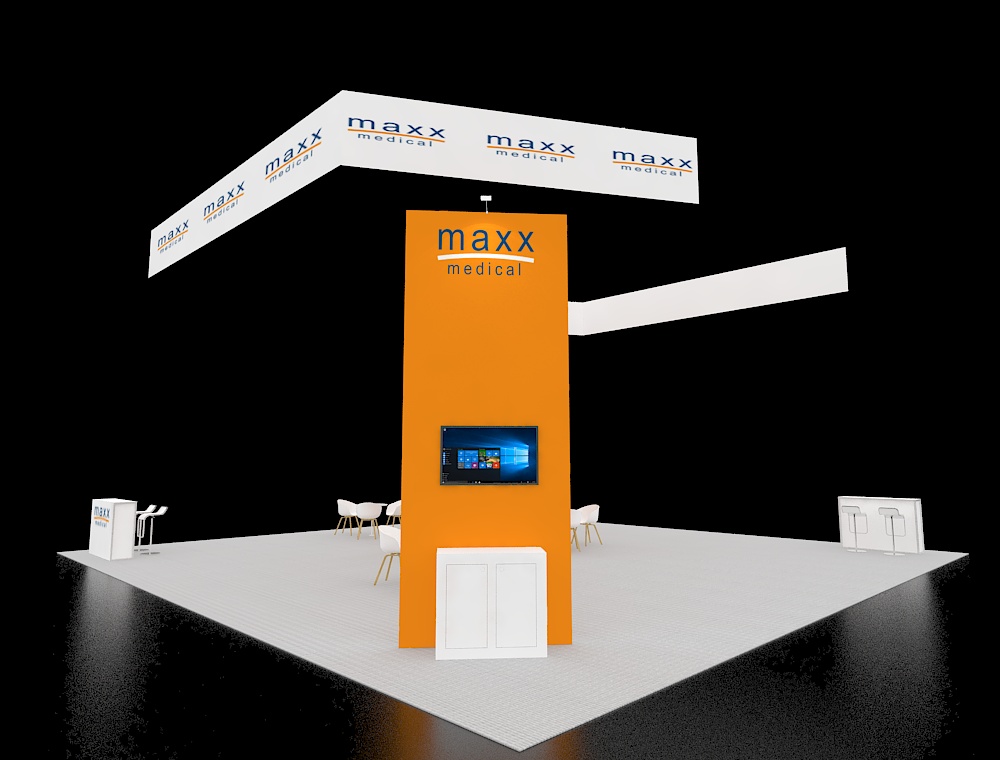 40x40 Island Exhibit with Hanging Sign & Corner Pillars